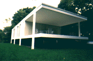 Designed and built from 1946 to 1951, Farnsworth House is considered a paradigm of international style architecture in America. The house's structure consists of precast concrete floor and roof slabs supported by a carefully crafted steel skeleton frame of beams, girders and columns. The facade is made of single panes of glass spanning from floor to ceiling, fastened to the structural system by steel mullions. The building is heated by radiant coils set in the concrete floor; natural cross ventilation and the shade of nearby trees provide minimal cooling. Though it proved difficult to live in, the Farnsworth House's elegant simplicity is still regarded as an important accomplishment of the international style.