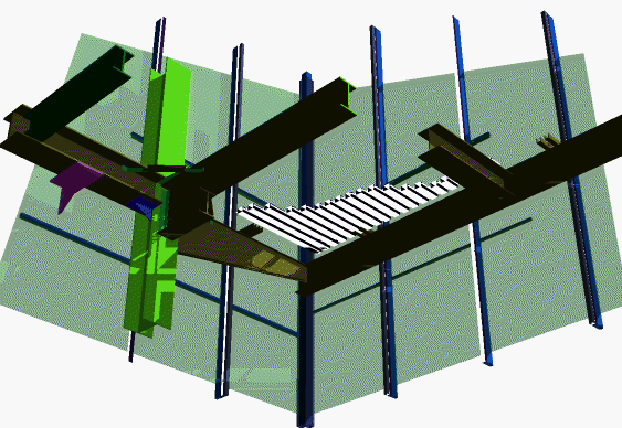 Thus, as seen in the FBD for gravity, gravity loads move from slabs to beams to columns to foundation. As seen in the FBD for wind, the wind load moves from facade through outriggers to beams. At the western end it continues through the wind trusses to the ground; In the eastern portion it continues through the moment connections to the columns and ground.