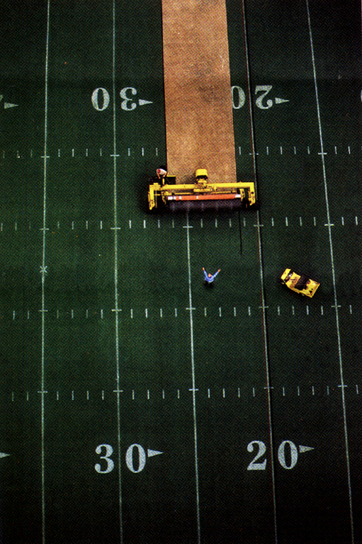 Ask anybody what effect these domes have had on American life and you will probably get the one-word answer, "AstroTurf." It is now almost folklore that the Astrodome's 4,596 skylights produced blinding glare for players fielding pop flies, that using an orange baseball didn't help and that, in the end, painting the skylights killed not just the glare but the natural grass on the playing field. The solution was a synthetic grass substitute, promptly dubbed AstroTurf.