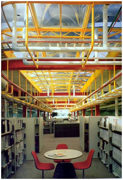 Recommended readingStanley Abercrombie, "Evaluation: Beaubourg Already Shows its Years." Architecture, Sept. 1983, pp. 62-70.Reyner Banham, "Inmos and the persistence of Functionalism." The Architectural Review Dec. 1982, pp. 26-41 Peter Buchanan, "Foster/Rogers High Tech: Classical/Gothic" and following articles on Hong Kong Bank, Coin St., and Lloyds. The Architectural Review, May 1981, pp. 265-282.