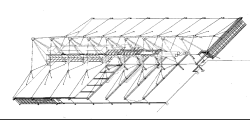 Although its structure is elaborate and its interior volume is large and open, close scrutiny reveals the PATCenter to be more complex and interesting than a shed decorated after the fact. Its stayed roof, service spine, and translucent facade successfully work together to provide a flexible interior volume and to give the building its ephemeral, high-tech expression. That said, the building is less successful in terms of both economics and maintenance. Despite being made as much as possible from an off the shelf kit of parts designed to minimize field construction work, the cost of the building is, at $110 per square foot, two to three times the cost of developer spec alternates.[3] This is somewhat due, of course, to the fact that including expensive parts in one's kit (like clevises and roof-penetrating gusset plates) can raise the cost of a building more than the decision to work with a kit can lower it. Similarly, exposing the rooftop mechanical system clearly separates structure & enclosure from servicing functions, but placing HVAC units and ducts 80 feet inboard of the building line makes their replacement -- requiring a large crane -- needlessly expensive. One wonders why, if economical maintenance of mechanical systems is truly important for the PATCenter, the servicing equipment isn't located more sensibly, somewhere where it could be easily removed with a small lift? In spite of these drawbacks, the PATCenter generally works as an exuberant, if costly "well tempered shed," that is still one of the few examples of "high tech" architecture built in the U.S.