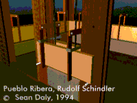 The planting scheme carries the layout of the house into the open. Lawn courts surrounded by salt bush hedges. Torrey pines at entrances. Climbing vines for walls and pergolas.