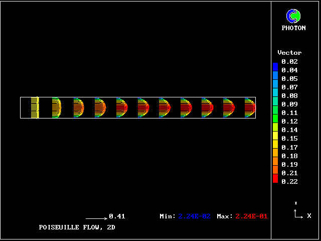 A variety of pictures are available from the Poiseuille test: