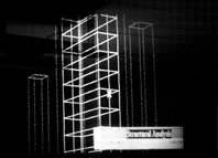 Our first document (Webster, 1994) is an analysis of the PATCenter by Richard Rogers and Partners. Details and photographs of the PATCenter are displayed graphically as hypertext links from the text-based critical analysis, and include a cutaway axonometric view of the building, typical structural, enclosure and HVAC details, and building free-body diagrams for gravity and wind loads (Figures 7 and 8). The database's presentation of Ludwig Mies van der Rohe's Farnsworth House makes more extensive use of the WWW browser as an integrated interface--spawning various applications to illustrate particular aspects of a project. In addition to critical essays and construction documents, the Farnsworth module includes an introductory animated fly-through, a thermal analysis of the building enclosure system, and 3D models analogous to the axonometric drawings presented for the PATCenter. Also included are a Dast-based structural analysis, and an animation showing the relationship between the building's visually perceived space and the structural components supporting it, how loads are transferred among these components, and how these loads cause them to deflect (Figures 9 and 10).