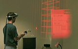 Augmented Reality in Architecture projects result from an ongoing collaboration between the Computer Graphics and User Interfaces Lab in Columbia's Department of Computer Science and the Building Technologies Group in Columbia's Graduate School of Architecture. We are developing augmented reality systems to improve methods for the construction, inspection, and renovation of architectural structures. Augmented reality systems add virtual computer-generated material to the surrounding physical world. Our augmented reality systems use see-through head-worn displays to overlay graphics and sounds on a person's naturally occurring vision and hearing. As the person moves about, the position and orientation of his or her head is tracked, allowing the overlaid material to remain tied to the physical world. |