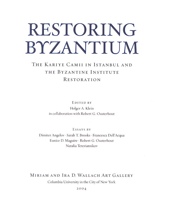 ![]() "Restoring Byzantium" cover. Click image to enlarge. ![]() "Restoring Byzantium" frontispiece. Click image to enlarge. |
