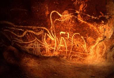the hand flat on the cave wall), artists must have sprayed paint (a solution of