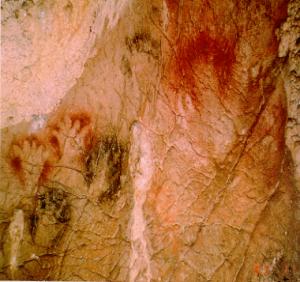 simpler symbolic motifs, including handprints outlined in colored earth, are