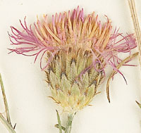 Identification: Biennial or short-lived perennial with a stout taproot. Seedlings have pinnately to bipinnately dissected leaves, elliptic to oblanceolate, 4-8 inches in length. Plants have 1-20 slender, upright stems, 3-10 dm tall, most branching in the upper half. Flowering heads are solitary at the end of branches. Ray flowers are lavender to purple, rarely white or cream colored. Fruits are 1/8 inch in length with a tuft of persistent bristles at the tip.Nu merous Centaurea species introduced into the United States have become invasive, most notably, yellow st arthistle (C. solstitialis), diffuse knapweed (C. diffusa ), and Russian knapweed (C. repens L.). Spotted knapweed can be identified from other Centaurea species by the pronounced black tip on the bracts of the seed head.