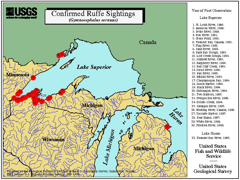 United States Geological Society. Distribution map of ruffe. March 21, 2002. USGS. Accessed on October 14, 2002.