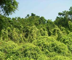 disperse easily and vines root readily in contact with moist soil. Repeated slashing or mowing, before the plant