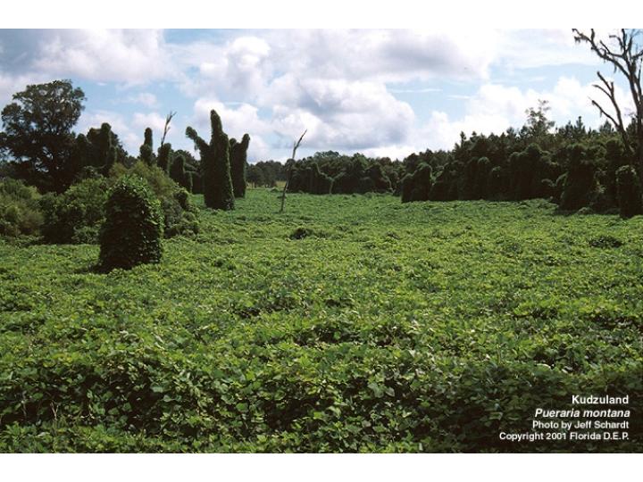 Threat(s): Kudzu has and continues to smother forests in the south-eastern United States by preventing them from getting sunlight and breaking them under the weight of its vines. Some forests have been strangled in as little as two to three years. Kudzu also threatens riparian areas and watershed health. Spreading abut 120,000 acres a year, control costs for the vine increase by nearly $ 6 million each year. The spread of kudzu results in a lowering of land productivity, biodiversity, and economic losses in the timber industry.