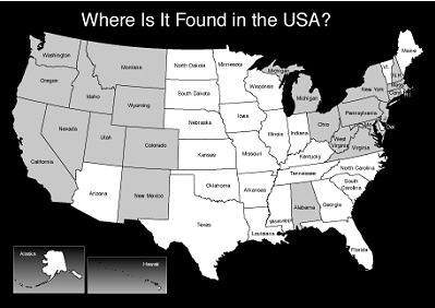 Site and Date of Introduction: In the United States, Myxobolus cerebralis was first reported in Pennsylvania in 1956 (Graff, 1996). By 1995 it had spread to 21 states (Bergersen & Anderson, 1997). After a review of 1996 data, Bergersen and Anderson (1997) determined that M. cerebralis had become distributed throughout most regions of the contiguous 48 states where self-sustaining trout populations existed. The exceptions were Wisconsin, Minnesota, the desert southwest and a few areas of isolated populations in Missouri, Nebraska and the Black Hills of South Dakota (Bergersen & Anderson, 1997)