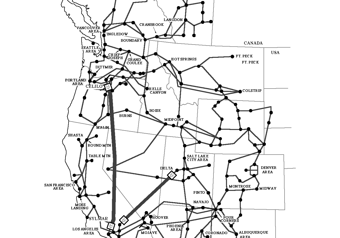 The more severe of the WSCC breakups were true "cascading outages," in which events at many different locations contributed to final failure. The map shown in Fig. 1 shows the more important locations mentioned in the descriptions to follow.
