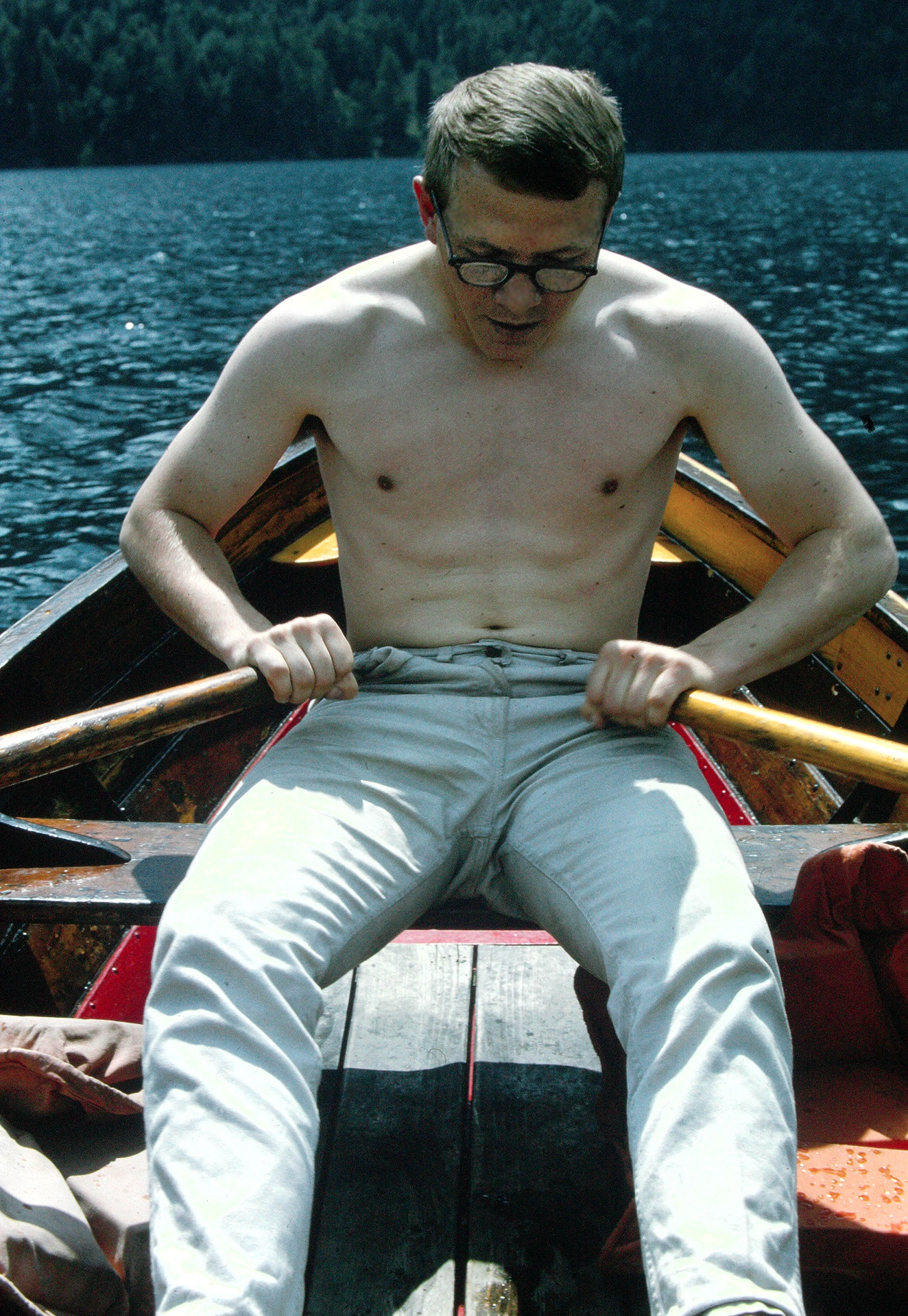 Roger rowing in a lake at an Army recreation center in Garmisch.
