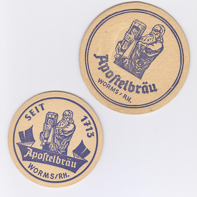 Apostelbräu Worms / Rhein seit 1713 - small and large version, blank on back.