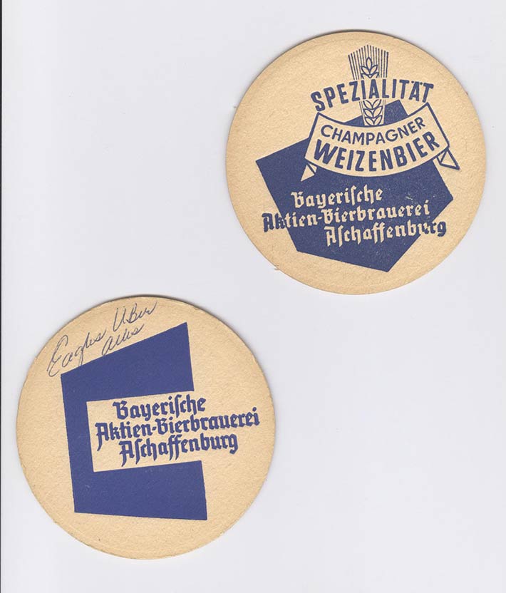 BABA Bier - Bayerische Aktien Bierbrauerei Aschaffenburg Spezialität Champagner Weizenbier (Frankfurt High School) Eagles Über Alles (unknown hand)
