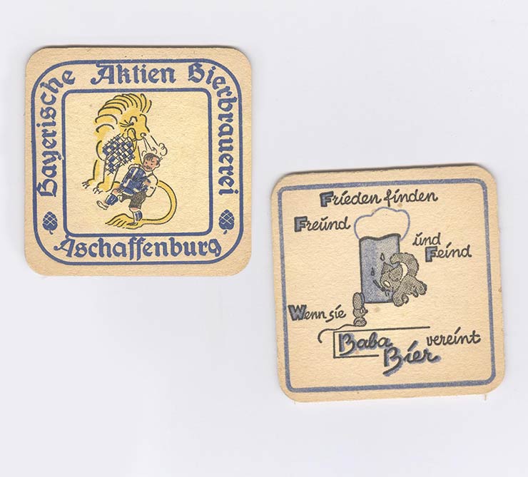 BABA Bier - Bayerische Aktien Bierbrauerei Aschaffenburg Frieden finden Freund und Feind / Wenn sie Baba Bier vereint (Friend and enemy make peace when Baba beer joins them).