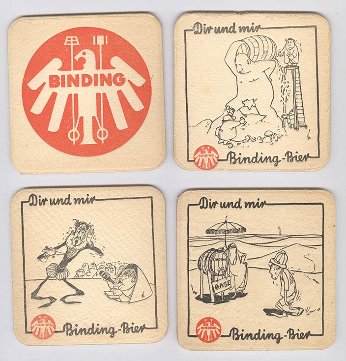 Binding Bier cartoons (statue, thespian, desert explorer)