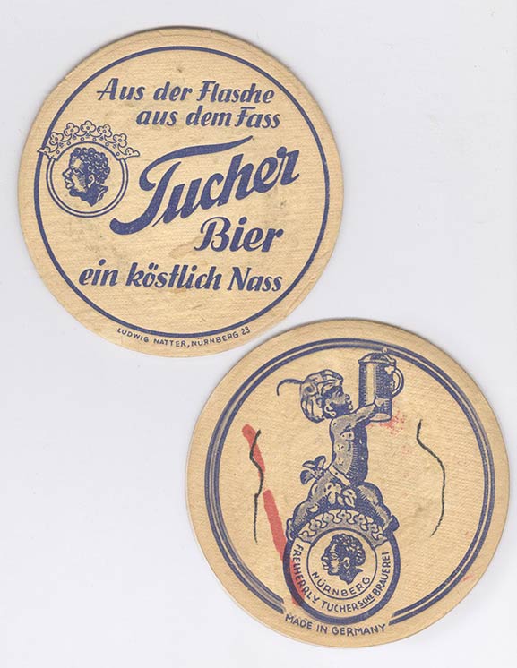 Tucher Bier Nürnberg. Another example of the "Nubian" theme so common in German commercial art in the postwar years (and probably before).
