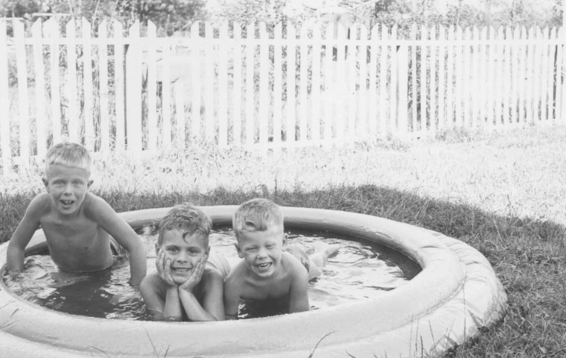 Me, Jimmie Walker, and my brother Dennis in the inflatable pool, July 4, 1952.