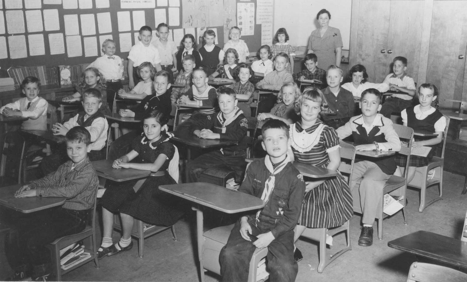 Mrs. De Groot's 4th grade class of 1953-54. Back row, standing: